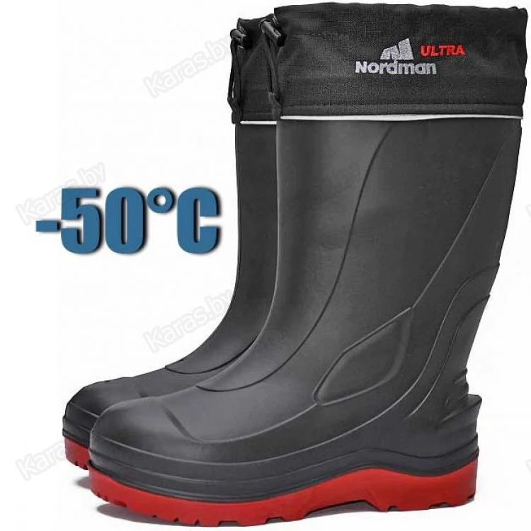 Сапоги зимние NordMan Ultra черные с красным (материал DEC-LIGHT)