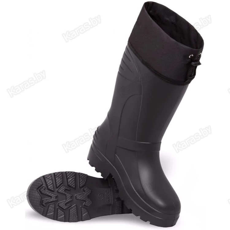 Материал сапог абсолютно водонепроницаем, удобная колодка обеспечивает комфортную носку обуви, подошва из материала ЭВА обладает нескользящим эффектом. Манжета изготовлена из водоотталкивающей ткани Оксфорд, фиксируется на ноге с помощью шнурка и стопора, что препятствует попаданию снега, воды и грязи внутрь.
