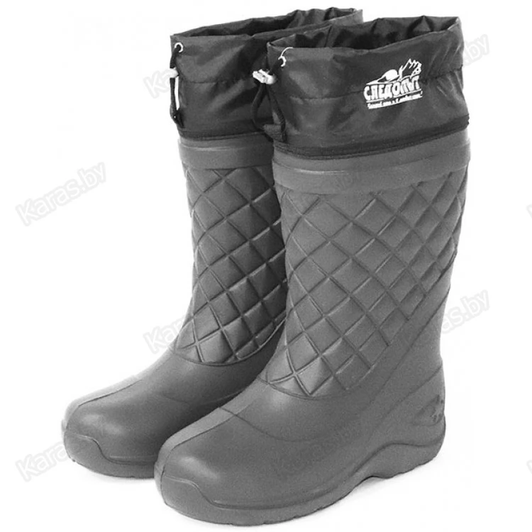 Оригинальный рисунок протектора подошвы разработан для увеличения сопротивления скольжению и лучшего сцепления с поверхностью почвы, а специальная надставка из водонепроницаемого морозостойкого материала со шнурком и фиксатором защитит от попадания снега внутрь сапога.