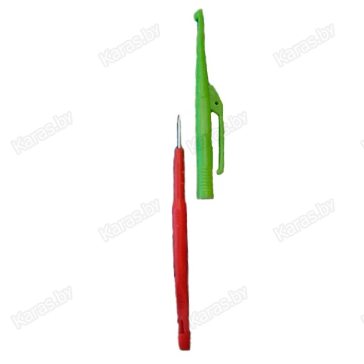 Экстрактор рыболовный двойной разъемный. На его концах имеются держатели крючка разного размера. Разъединив его Вы сможете воспользоваться иглой для развязывания узелков на оснастке. Имеется скоба для крепления на деталях одежды.