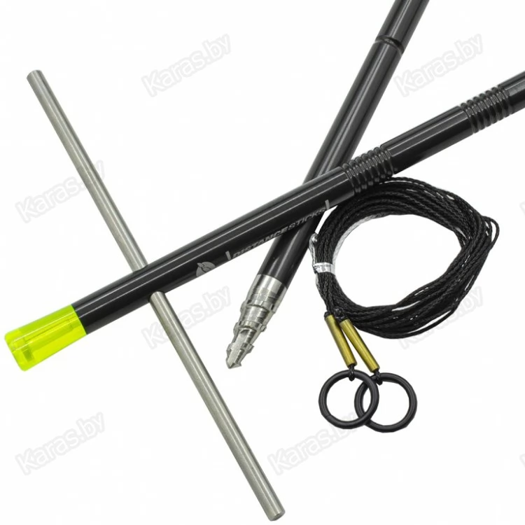 Korda Distance Sticks – колышки для измерения лески. При помощи данного аксессуара можно точно определить длину использованной лески до предполагаемой точки заброса и в дальнейшем заклипсовать дистанцию на удилищах, которые будут доставлять порции прикормки или наживку в необходимое место. Distance Sticks изготовлены из высококачественной нержавеющей стали методом точения из цельной заготовки. На острие колышка нарезана особенная резьба с зубцами. Она помогает установить инструмент даже в очень плотный грунт. Для ввинчивания используется специальная стальная ручка, которая вставляется в отверстие вблизи головы и используется как рычаг. На корпусе колышка располагаются четыре группы проточенных углублений. Они предназначены для накапливания лески и предотвращения ее соскальзывания и дальнейшего спутывания. Верхушку каждого колышка венчает пластиковая голова. Внутри ее корпуса можно разместить "светлячок", который позволит использовать аксессуар в темное время суток. А на ее крышке располагается «уровень».