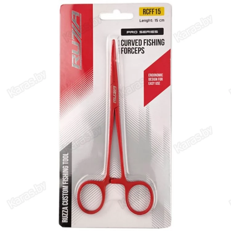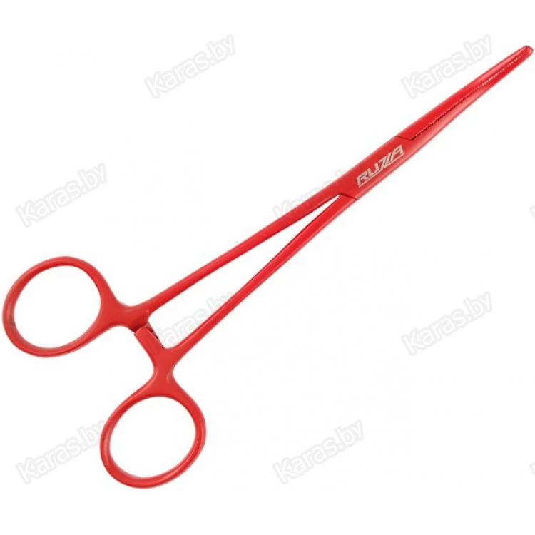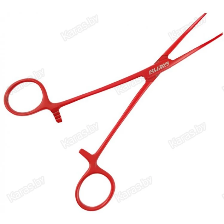Зажим рыболовный (корнцанг) для извлечения крючков из пасти рыбы. Имеет отогнутые в сторону губки и многопозиционный фиксатор, удерживающий зажим в закрытом положении. Рыболовный зажим изготовлен из высококачественной нержавеющей стали с тефлоновым покрытием. Длина 15см.