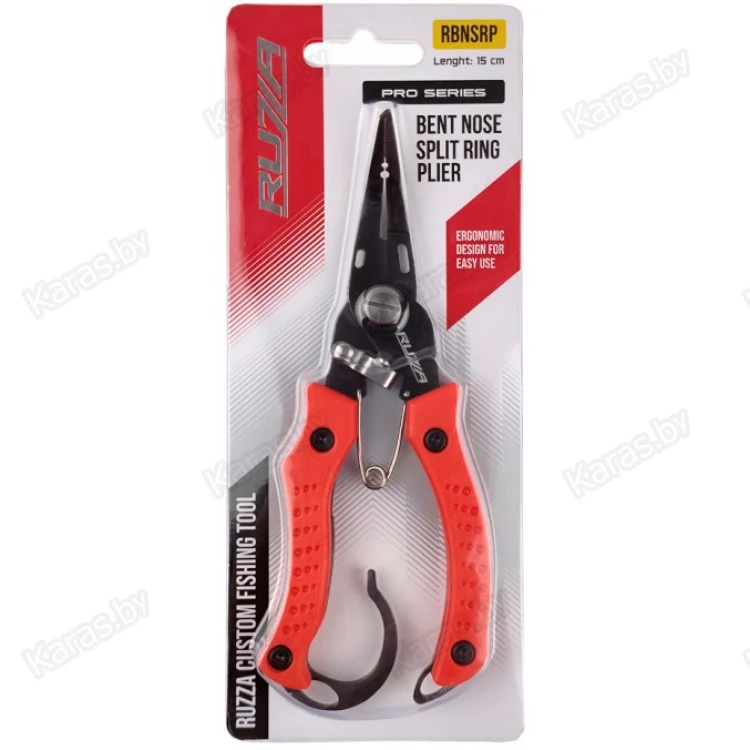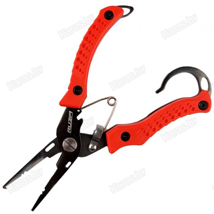 Плоскогубцы из нержавеющей стали, с удобными, антискользящими накладками на ручках. Имеют специальный «зуб» для разжимания заводных колец, приспособление для зажимания обжимных трубочек, крючок для затягивания узлов и оборудованы острейшими резцами, которые с легкостью перекусывают лески и шнуры. Причем одно из лезвий — зазубренное. Для максимального удобства оснащены пружиной и блокирующей скобой (фиксатором).