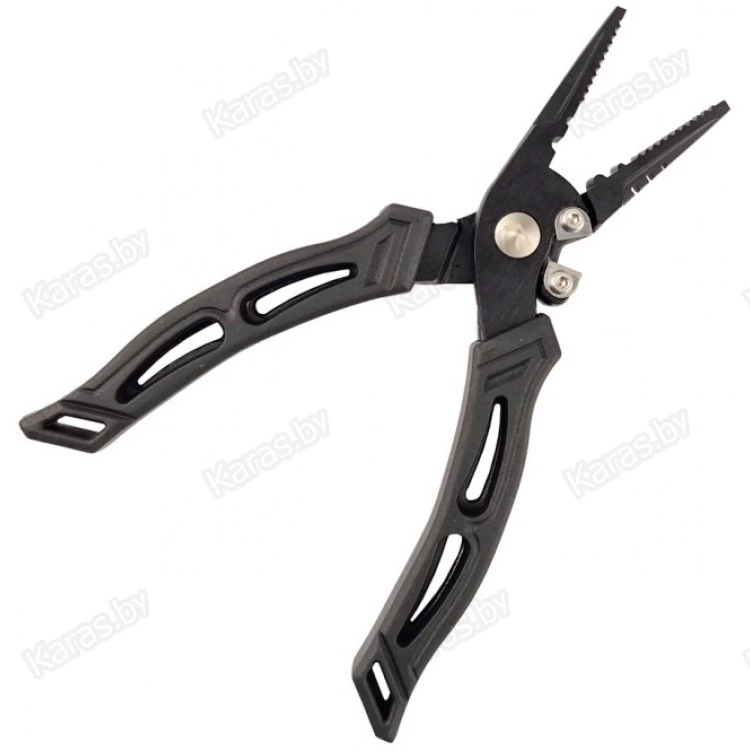 Плоскогубцы из нержавеющей стали с удобными, антискользящими накладками на ручках. Имеют приспособление для зажимания обжимных трубочек, правку крючков и поводков. Оборудованы острейшими резцами, которые с легкостью перекусывают лески и шнуры. Длина 15см.