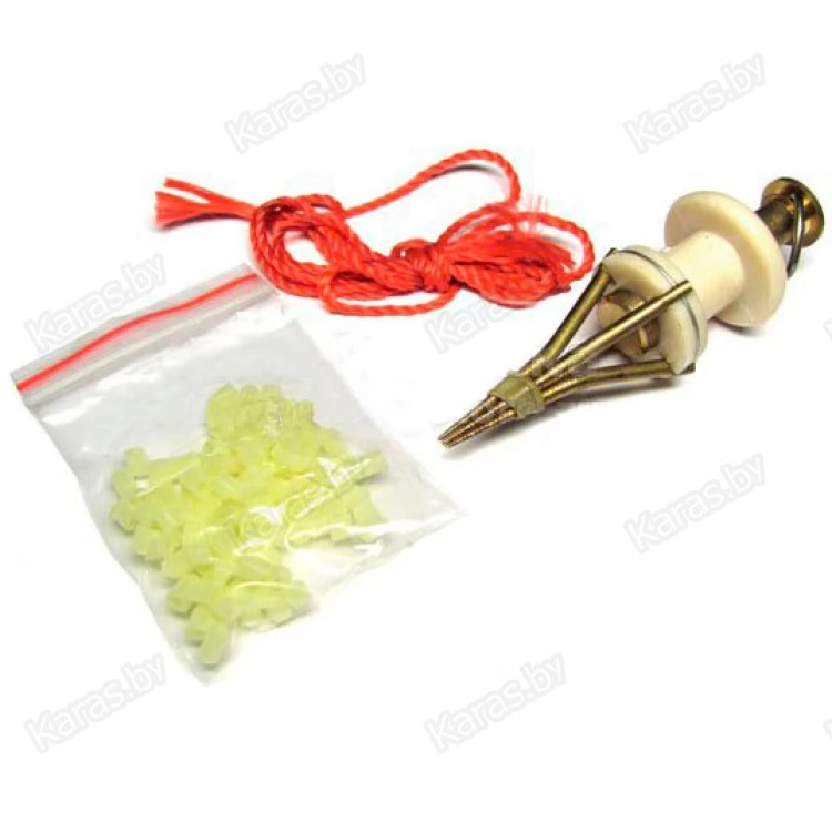 Этот полезный инструмент предназначен для тех, кто любит ловить с помощью одной из самых популярных наживок - мотыля. Особенно эффективно мотыль привлекает рыбу, когда на крючок насаживается целый пучок. Связка мотыля выделяет гораздо более насыщенный и привлекательный для рыбы аромат. К тому же, некоторые рыбы мелкую насадку просто проигнорируют. Насадить пучок мотыля на крючок очень проблематично. Для решения этой проблемы существует специальное приспособление - пучковяз. Это простое устройство имеет в конструкции четыре лапки в виде заостренных металлических стержней. Специальный механизм разводит лапки пучковяза в строну, а лапки в свою очередь растягивают предварительно надетую специальную резинку. Образовавшееся пространство заполняется кормовым мотылем, после чего лапки отпускаются, а связка наживки остается на крючке, надежно зафиксированная.