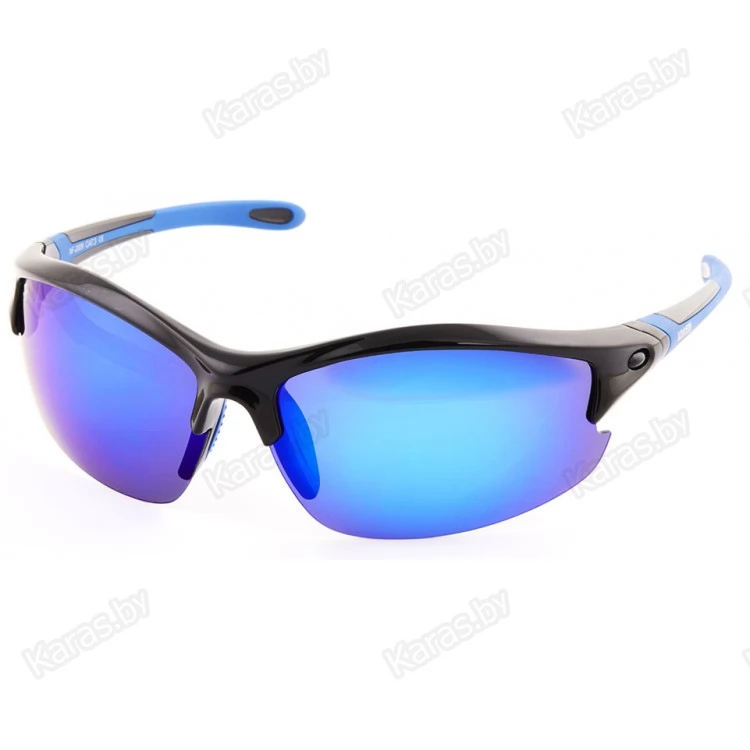 Очки с линзами серого цвета и зеркальным напылением синего цвета. Рекомендуются к использованию в солнечную погоду.
