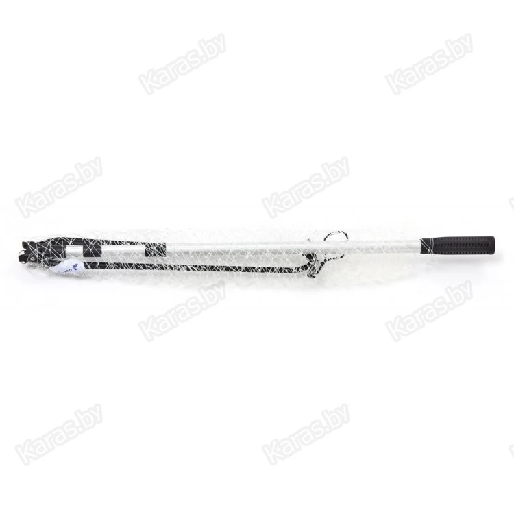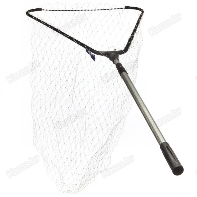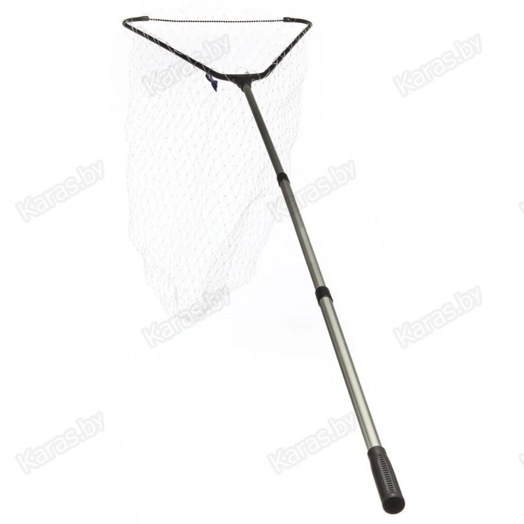 Складной подсачек с треугольной формой сачка с сеткой из лески и с телескопической рукояткой.