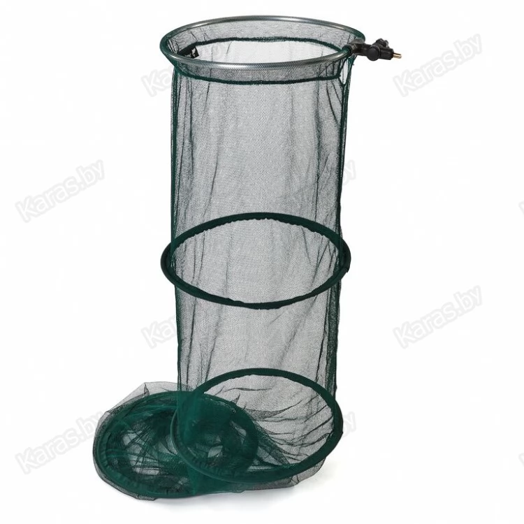 Вместительные матерчатые садки со съемной стойкой для крепления их на берегу. Низ садка оборудован замком с фиксатором для удобной выемки рыбы.