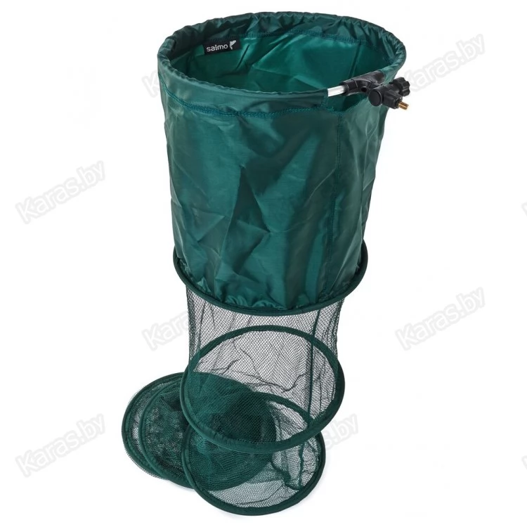 Вместительные матерчатые садки со съемной стойкой для крепления их на берегу. Низ садка оборудован замком с фиксатором, для удобной выемки рыбы.