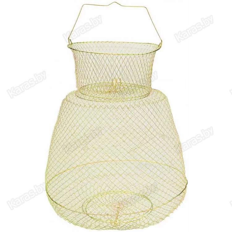 Металлические садки отличаются высокой прочностью и долговечностью. Очень легко моются от рыбьей чешуи и слизи. Верхнее отверстие садка оборудовано защитной крышкой с автоматически закрывающейся пружиной. Нижняя часть садка имеет выпускное отверстие с крышкой которая открывается вовнутрь, для удобной выемки рыбы.