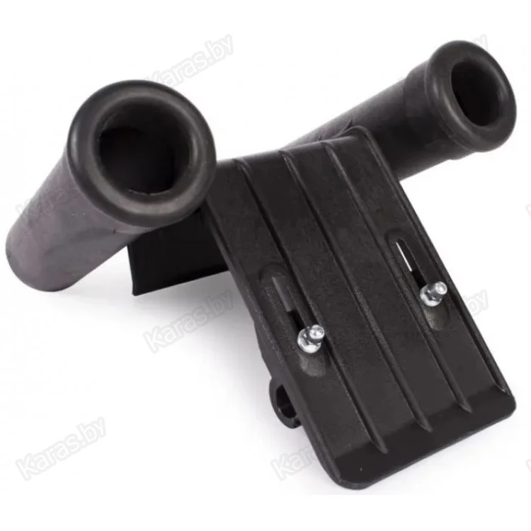 Держатель для 2-х удочек предназначен для размещения удилищ в надувных лодках оснащённых системой лик-трос. Крепление держателя осуществляется на ликтрос с помощью фигурной планки, вынос, которой можно регулировать под разный диаметр баллона лодки. Места контакта баллона с держателем выполнены покатыми, чтобы не оставалось царапин на ткани ПВХ. Корпус изделия литой, пластиковый.