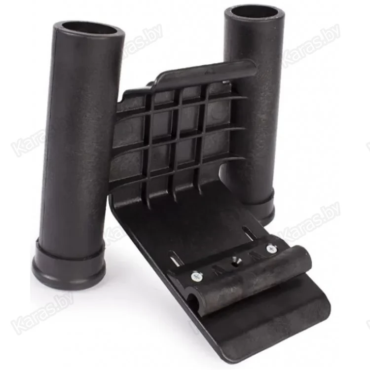 Диаметр стаканов 30 мм. Стаканы расходятся друг от друга под небольшим углом. Каждый стакан снабжен мягкой насадкой из полимера, которая защищает удилище в месте контакта. Стакан крепления для спиннинга очень надежный, поскольку выполнен из ударопрочного пластика. Болты и фигурные гайки изготовлены из оцинкованной стали.
