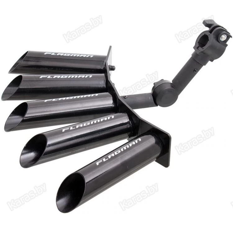 Преимущества удобной конструкции Устройство подставки Flagman под 5 удилищ продуманно и совершенно в ее конструктивной простоте. По стилю и качеству исполнения приспособление способно поспорить с лучшим ассортиментом фидерных аксессуаров знаменитых английских брендов. Пять крепежных стаканов располагаются на нем веером, обеспечивая каждому фидеру свое пространство, необходимое для того, чтобы снасти не запутались.