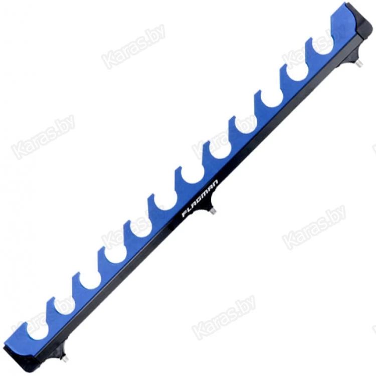 Гребенка Flagman на 12 удилищ. Предназначена для хранения запасных удилищ и топ-китов на рыбалке. Выполнена на алюминиевой раме из мягкого пористого материала EVA, предохраняющего бланки удилищ от царапин. Все ячейки имеют wind proof скос в одну сторону, что значительно облегчает вынимание удилищ из гребенки во время ловли и обеспечивает их фиксацию при порывах ветра. Предусмотрены три точки крепления со стандартным резьбовым соединением.
