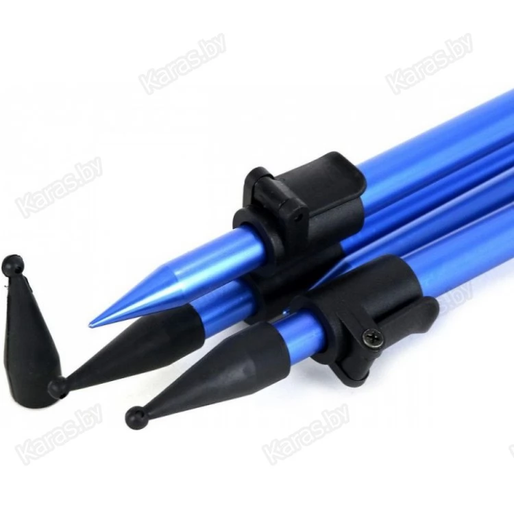 Телескопический трипод высшего качества Elegance Feeder Pro, очень хорошо спроектированный, в синем цвете. Он изготовлен из алюминия и прочных пластиковых компонентов, поэтому он не только легкий, но также чрезвычайно стабилен благодаря новой конструкции головки, соединяющей три регулируемые телескопические ножки. Сверху он оснащен стандартной металлической резьбой, подходящей для любого держателя удилища в линейке Elegance Pro. Высота может регулироваться как путем удлинения ног, так и путем подъема и опускания центрального стержня, который сжимается с помощью полноразмерного винта. Этот трипод складывается и регулируется очень легко. Поставляется с защитными крышками для острых частей ног.