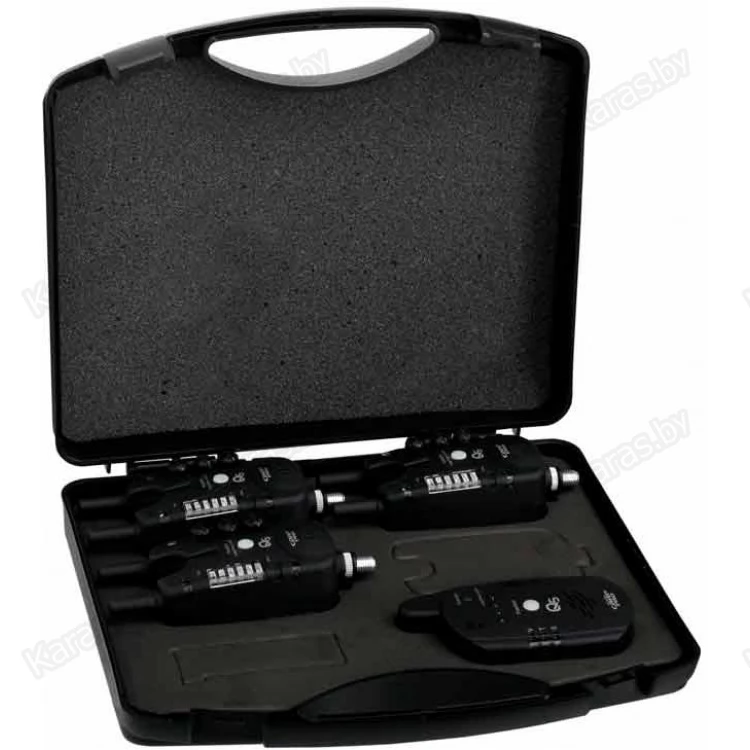 Carp Pro Q5 – наборы высококлассных электронных сигнализаторов поклевки. Поставляются в комплектах 3+1 (красный, синий, зеленый + ресивер) и 4+1 (красный, синий, зеленый, желтый + ресивер).