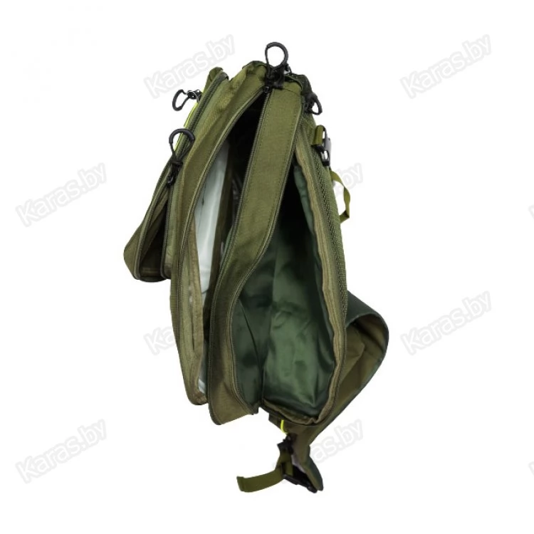 Рюкзак Akara Streetfishing green 9L - предназначен для рыбалки, охоты, активного отдыха или повседневной носки. Имеет два основных отсека на замках, количество наружных карманов на замках – 2. Имеется дополнительный съемный карман на лямке сумки, также карман – сеточка на резинке на основании сумки. Спинка сумки имеет анатомические мягкие, дышащие вставки. Рюкзак имеет косую шлейку с дополнительным поямным креплением.
