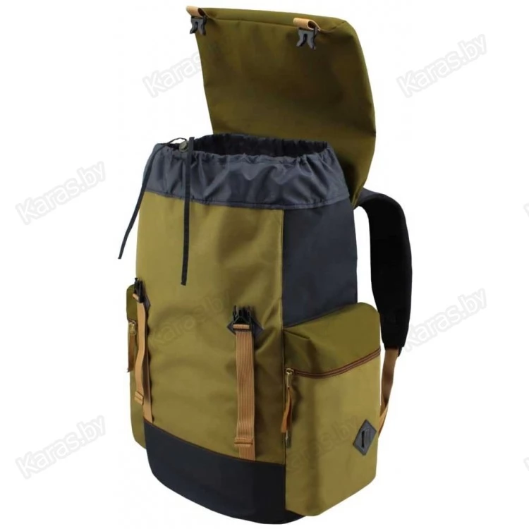 Стильный недорогой непромокаемый рюкзак из полиэстерной ткани 600×600D с дополнительной дублировкой ПВХ-пленкой объёмом около 50 литров. Рюкзак имеет дно из ПВХ ткани, 2 объемных внешних кармана, 1 карман на крышке и один потайной карман на спинке, который исключает доступ в него, если рюкзак на плечах. Все карманы на молнии.