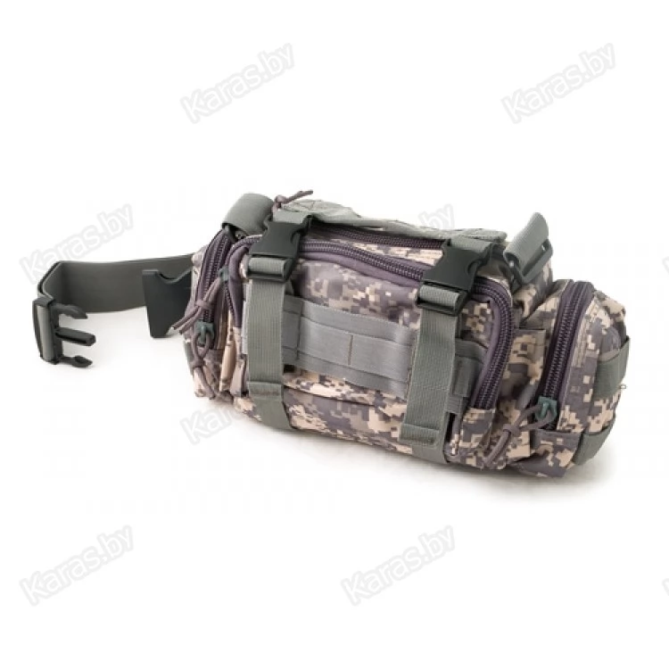 Оснащена множеством лямок с регулировкой по длине. Основное отделение + один дополнительный карман на фасаде сумки + два боковых кармана.