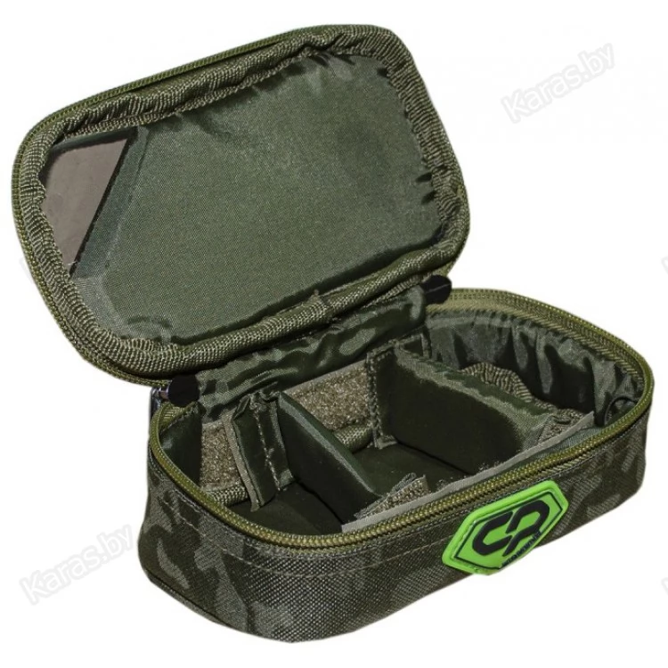 Carp Pro Diamond Accessory Bag S – небольшая функциональная сумка для аксессуаров. Изготовлена из фирменного влагостойкого камуфлированного материала Oxford 650D. Ее внутреннее пространство разделено съемными перегородками на три отделения. Мягкие перегородки с креплениями на липучках надежно защищают содержимое, при этом позволяя с легкостью трансформировать размеры отделений Diamond Accessory Bag S под ваши нужды. Грузила, кормушки, бобины с леской и поводковыми материалами, рыболовную мелочевку – все это можно быстро и удобно расположить в сумке. Прозрачный уголок крышки позволяет определить содержимое, не прибегая к ее открыванию. Для удобства транспортировки предусмотрена ручка.