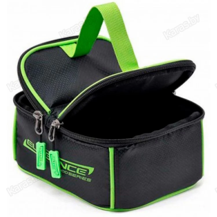 Практичная и мягкая сумка с двумя отделениями на двухсторонней молнии, предназначенная для хранения и транспортировки фидерных и методных кормушек. Сверху расположена ручка для переноски.