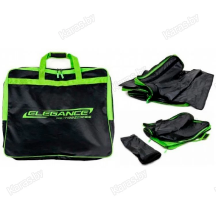 Первоклассная сумка с поистине фантастическим дизайном для перевозки и хранения садков, которая состоит из двух отделений для двух садков, и у каждого отделения внутри есть съемный резиновый вкладыш для удобства обслуживания и чистки (крепится на липучках). Данный вкладыш одновременно задерживает воду и блокирует неприятные запахи внутри. Эта сумка закрывается на качественную двустороннюю ""молнию"" и имеет прочные двойные ручки для переноски.