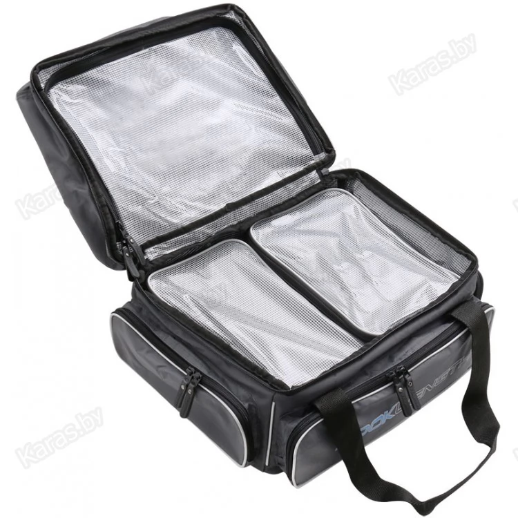 Небольшая компактная сумка из износостойкого материала для всех необходимых на фидерной ловле принадлежностей и аксессуаров. Внутреннее пространство оптимизировано под два небольших вынимающихся бокса с прозрачными крышками на молниях для грузил, кормушек, оснасток и прочих составляющих фидерного снаряжения. В крышке предусмотрен прозрачный файл-отделение для поводочницы и пр. Три вместительных наружных кармана на молниях и две надежные ручки для переноски дополняют общую картину этой замечательной незаменимой сумки.