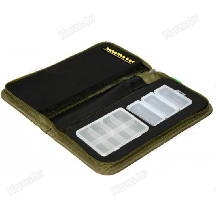 Сarp Pro Rig Holdall CPLD69544 – полужесткая сумка-поводочница для карповых поводков и терминальных снастей. Выполнена из фирменного влагостойкого камуфлированного материала Oxford 650D. Имеет компактную продуманную конструкцию, закрывается на молнию. С одной стороны основного отделения находится поводочница для карповых поводков, выполненная из EVA, с другой – пластиковые коробочки для хранения мелких аксессуаров (крючков, застежек, колечек, вертлюжков и т.п.). Благодаря жестким вставкам сумка-поводочница Carp Pro Rig Holdall обеспечивает прекрасную защиту содержимому.