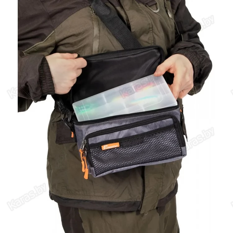 Небольшая рыболовная сумка «Следопыт Sling Lure Bag M» для непродолжительной рыбалки с берега. Компактная сумка позволяет взять с собой базовый набор приманок для комфортной ловли. Удобное расположение карманов и креплений позволяет с удобством закрепить инструменты и прочий необходимый инвентарь. Сумка комплектуется тремя пластиковыми коробками «Следопыт LUNO 18» (размер 230х123х36,5 мм) и плечевым ремнем.