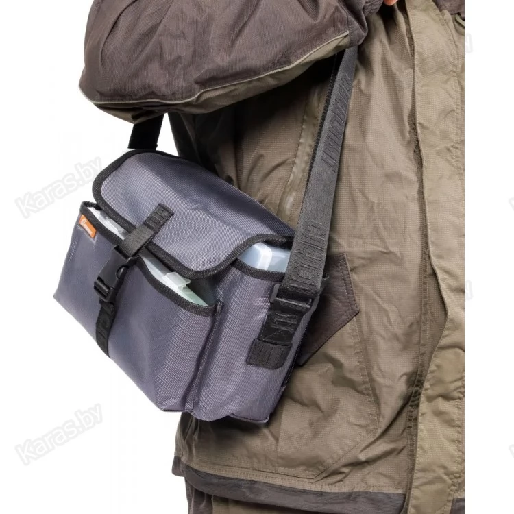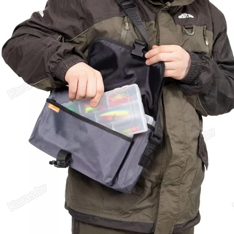 Небольшая рыболовная сумка «Следопыт Sling Lure Bag S» для непродолжительной рыбалки с берега. Компактная сумка позволяет взять с собой базовый набор приманок для комфортной ловли. Удобное расположение карманов и креплений позволяет с удобством закрепить инструменты и прочий необходимый инвентарь. Сумка комплектуется двумя пластиковыми коробками «Следопыт LUNO 20» (размер 277х185х42,5 мм) и одной пластиковой коробкой «Следопыт LUNO 18» (размер 230х123х36,5 мм) , а также плечевым ремнем.