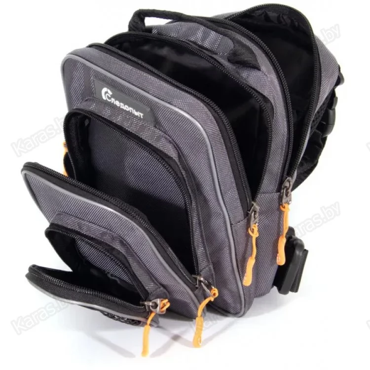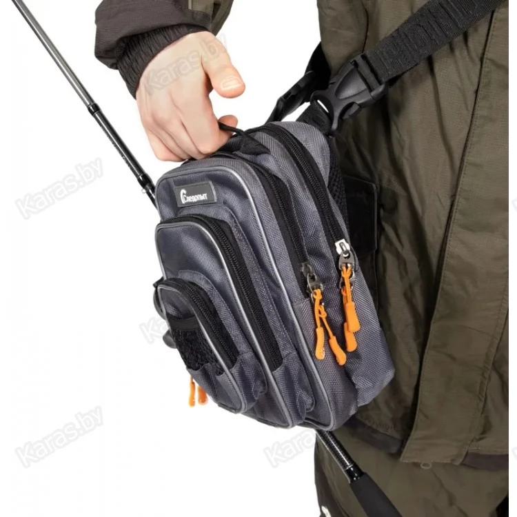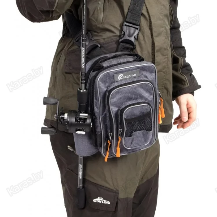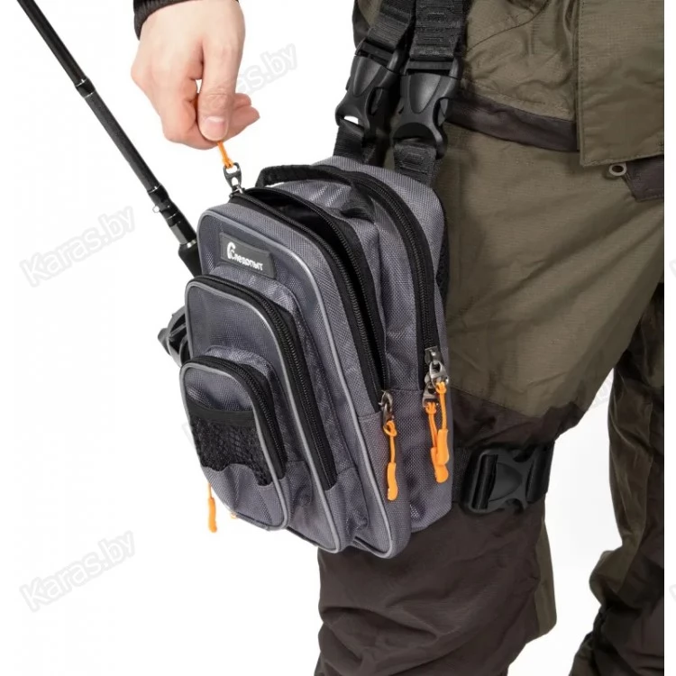 Набедренная сумка «Следопыт Street Fishing MultiLock Pocket» – достаточно вместительная модель, которая имеет два больших отделения, один карман среднего размера и карман для небольшой коробочки с аксессуарами. Сумка изготовлена из непромокаемого, износостойкого материала Oxford 1680D. Основной отличительной особенностью сумки является система крепления на фастексах. Мультипозиционную сумку можно крепить на поясе с помощью двух специальных петель и стропы, на спину или грудь с помощью плечевого/шейного ремня, который пристегивается к сумке с помощью фастексов.