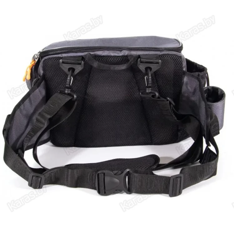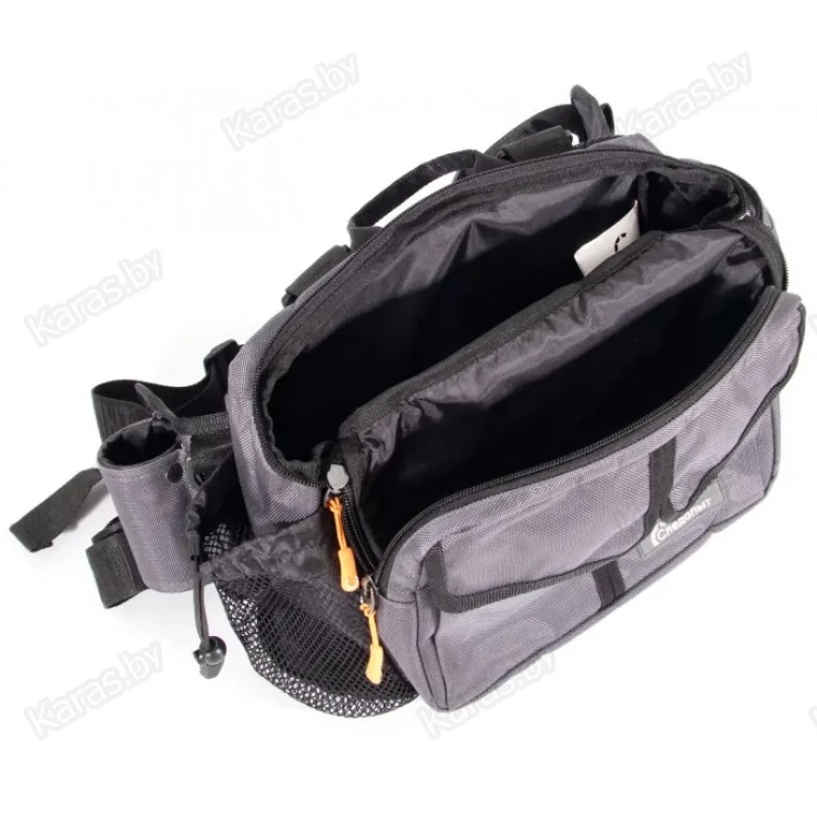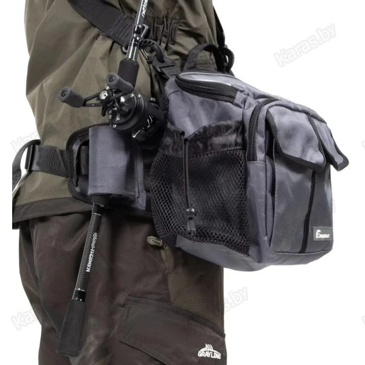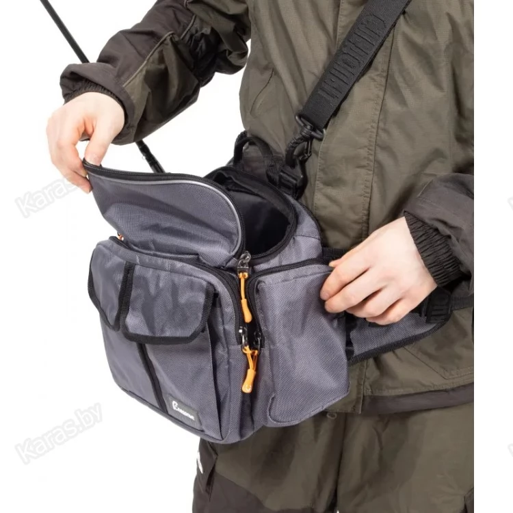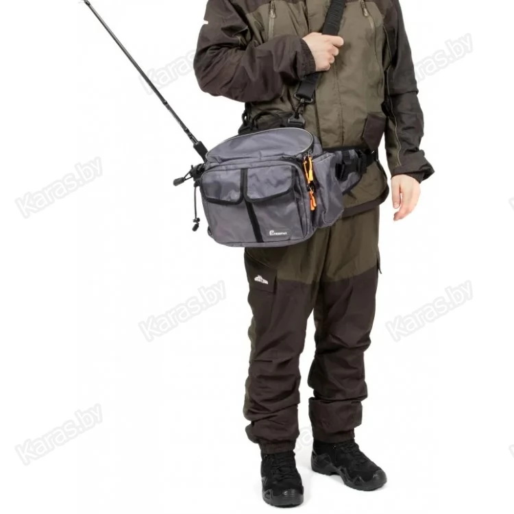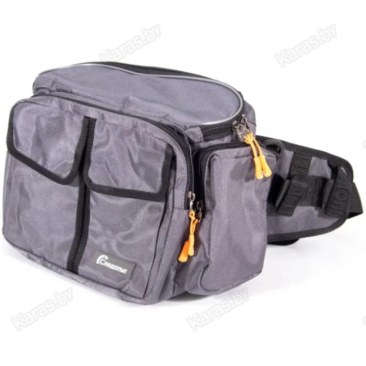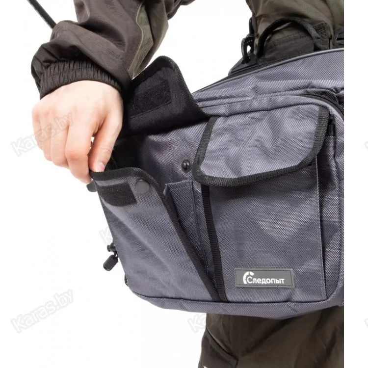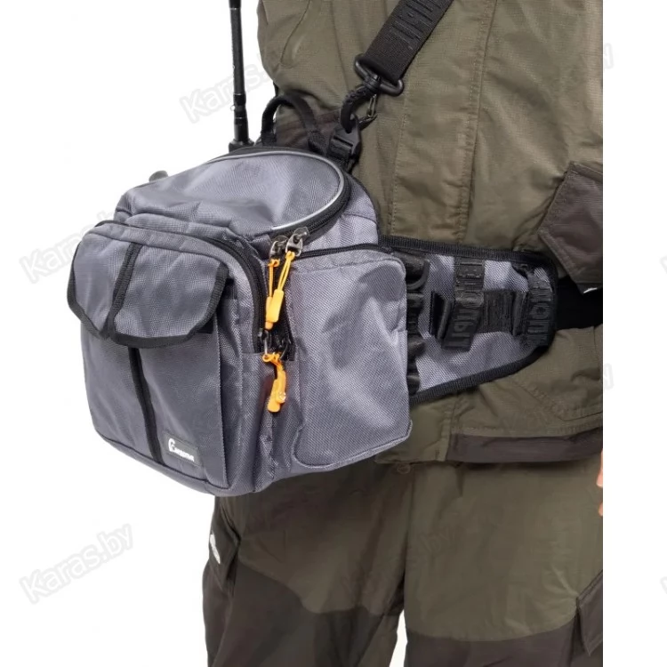 Сумка рыболовная поясная «Следопыт Fishing Hip Bag T2» имеет одно объемное центральное отделение и два внешних фронтальных кармана. Для крепления ретриверов и различных инструментов предусмотрены D-образные кольца. Сумка изготовлена из плотной и износостойкой ткани 1680D. Конфигурация сумки предназначена как для забродных видов ловли, так и для ловли в стиле «street-fishing». Мультипозиционная сумка предполагает носку на поясе, спине или груди.