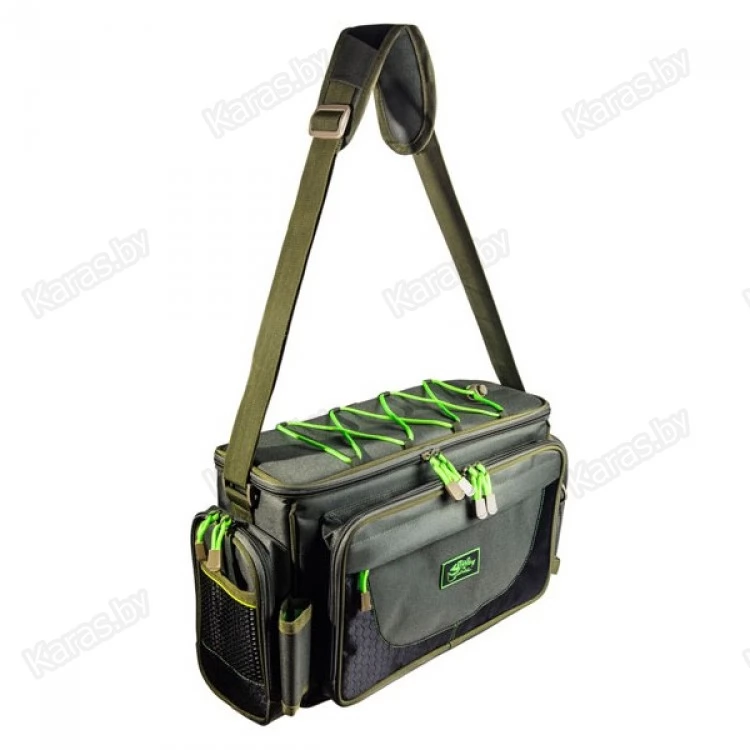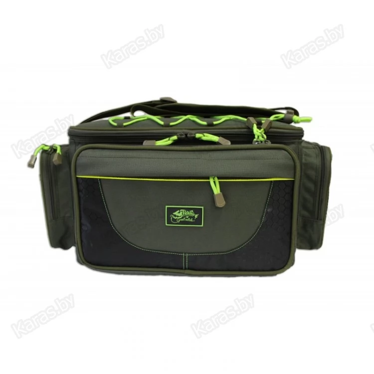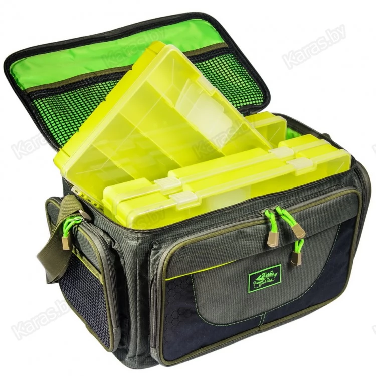 Удобная сумка для рыбака. Внутри размещены пластиковые коробки.