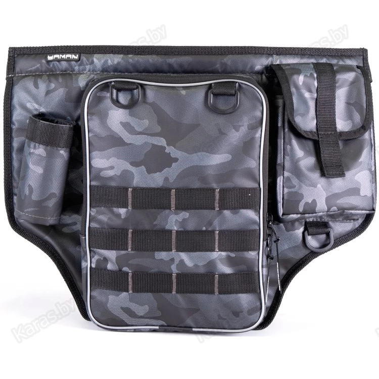 Сумка рыболовная поясная Yaman Fishing Belt Bag Light. Средняя по объему модель в серии. Предусмотрен жесткий стакан-держатель для спиннинга, несколько D - образных колец для крепления ретриверов различных инструментов и небольшой карман, помимо базового, с верхним клапаном. Базовый карман вмещает одну коробку, которая поставляется в комплекте.