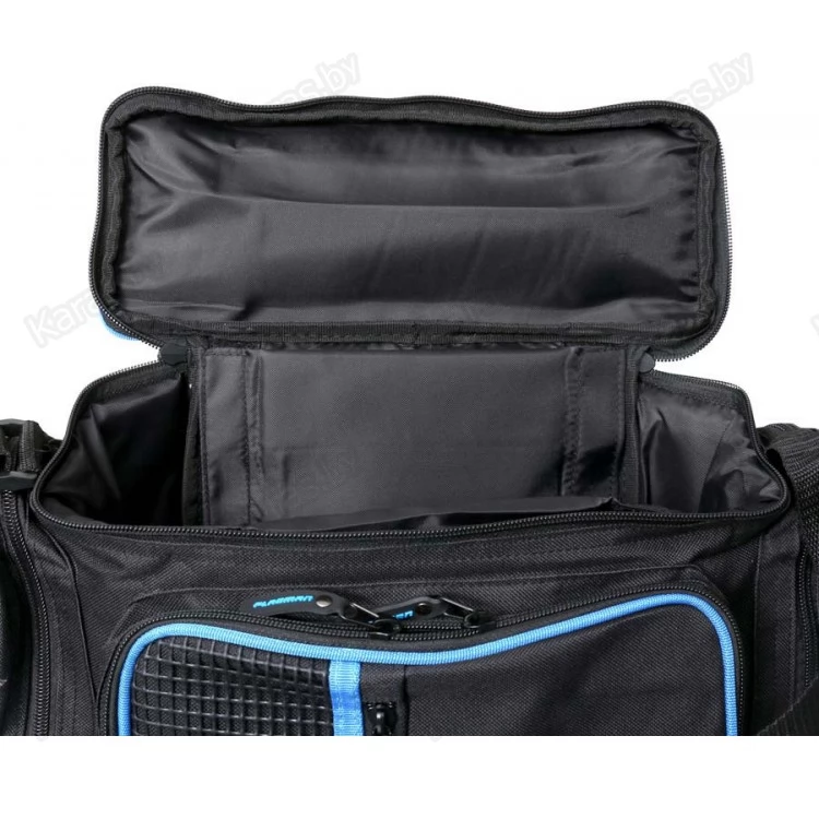 Удобная и вместительная спиннинговая сумка для рыболовных принадлежностей и коробок с приманками, из прочной синтетической ткани. Сумка превосходно защищает рыболовные принадлежности от брызг и повреждений. Оснащена двумя боковыми карманами и одним фронтальным на молнии. На фронтальном имеется карман с сеточкой – «для мелочевки». Крышка закрывается на молнию. Внутри имеются две мягкие защитные накладки на липучках. Дополнительная крышка «от дождя», она же «рабочий столик», застегивается на две защелки типа Fastex и усилена жесткой пластиковой вставкой. Для транспортировки сумки используются наплечный ремень с эргономичной мягкой накладкой и ручка.
