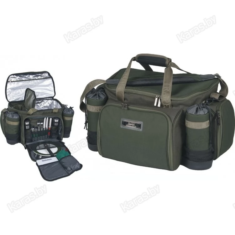 Многофункциональная сумка-холодильник для пикника.Сумка оборудована двумя боковыми карманами,2 специальными отсеками для транспортировки бутылок,в большой отсек разбит на две части,в одной сумка-холодильник,в другой отсек для продуктов.