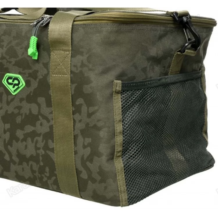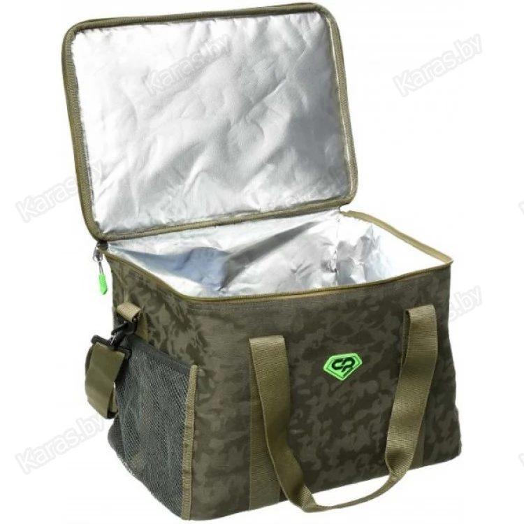 Carp Pro Cooler Bag CPL68513 – термосумка, предназначенная для транспортировки и хранения скоропортящихся насадок и прикормок, а также продуктов питания. Изготовлена из фирменного влагостойкого камуфлированного материала Oxford 650D. Сверху закрывается на двустороннюю молнию. Стенки Carp Pro Cooler Bag имеют вставки из мягкого пористого материала, а внутренняя поверхность отделана специальным материалом, отражающим тепло, благодаря чему сумка отличается великолепными термоизоляционными свойствами. Она достаточно компакта и вместительна. Термосумка оборудована двумя боковыми сетчатыми карманами, водостойким прорезиненным дном, регулируемым наплечным ремнем и ручками для переноски.