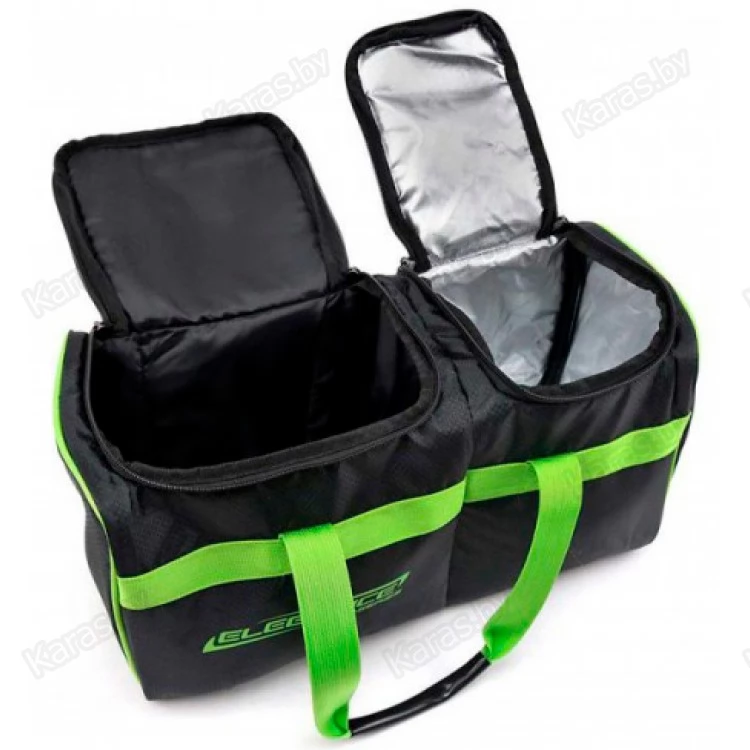 Термосумка с толстыми стенками, обладающими низкой теплопроводностью и с двумя раздельными отделениями (камерами), которые закрываются клапанами на "молнию" с верхней стороны. Большая камера многофункциональна и подходит для различных целей, а малая – особая, теплоизолированная для хранение приманок, еды или питья. У этой сумки прочные ручки для переноски.