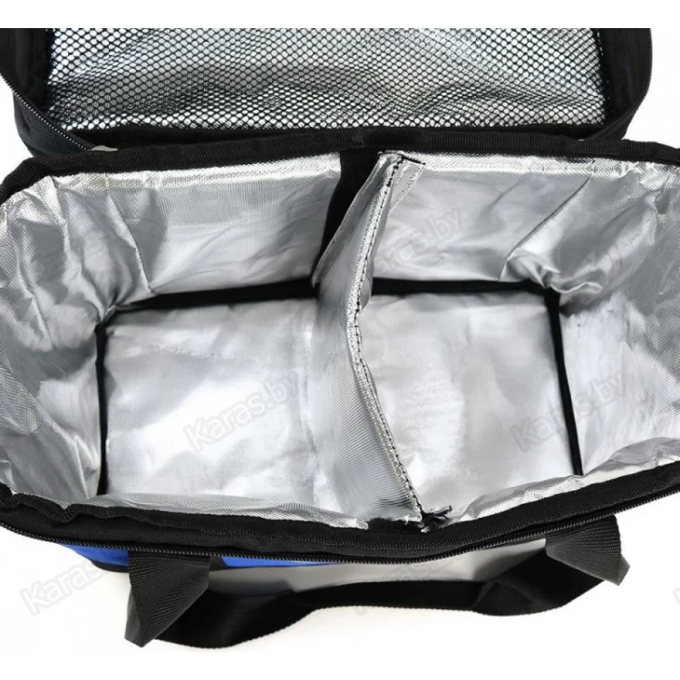Высокого качества с толстой набивкой термосумка, основной отсек которой изолирован и над ним, в крышке, большой объемный карман для разной мелочевки. Также предусмотрены два сетчатых кармана под стенкой сумки. Модель комплектуется двумя качественными пластиковыми коробочками для насадки. В термо отделении практично хранить приманки, напитки и еду.