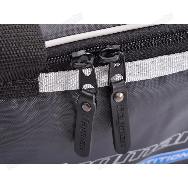 Термосумка выполнена из абсолютно непромокаемой ткани с ПВХ-покрытием, закрывается на молнию. Стенки имеют вставки из мягкого пористого материала, а внутренняя поверхность отделана отражающим материалам. Благодаря этому сумка отличается великолепными термоизоляционными свойствами. Предназначена для транспортировки и хранения во время рыбалки скоропортящихся приманок и прикормок, может использоваться для продуктов питания. Для поддержания в сумке низкой температуры есть смысл приобрести хладагент.