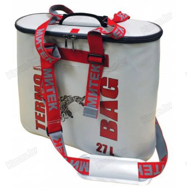 Сумка выполнена из армированной ПВХ ткани плотностью 630 гр/м2. Внутренний термоизоляционный слой изготовлен из пенополиэтелина с фальгированным покрытием. Швы наружного и внутреннего слоя сварные герметичные. Ручки имеют регулировку по длине. Замыкается сумка на надежную молнию №10.