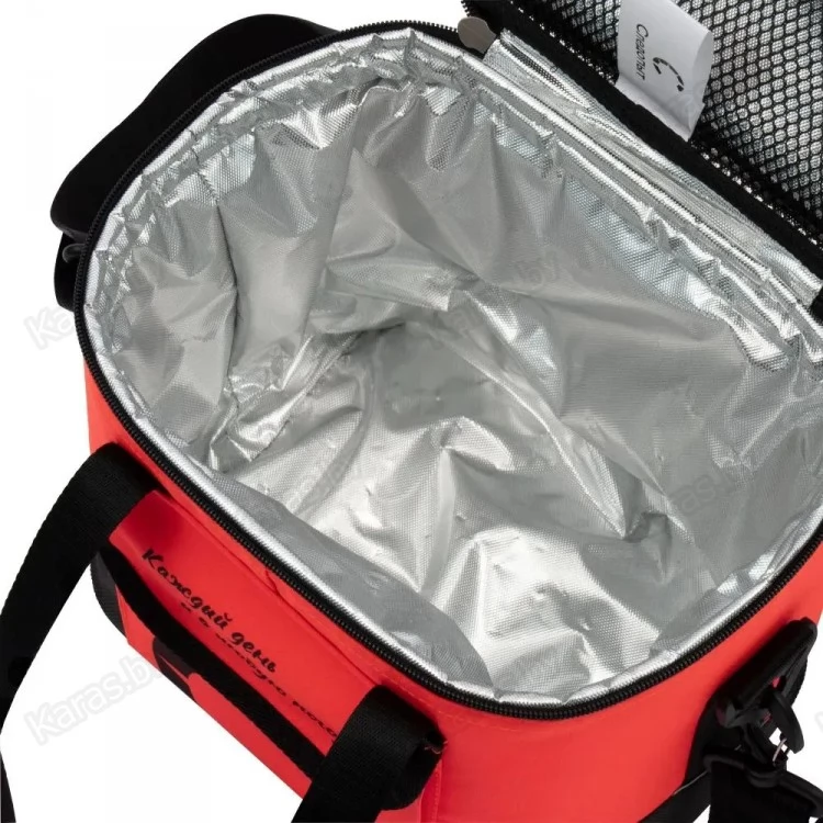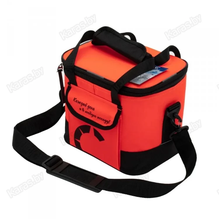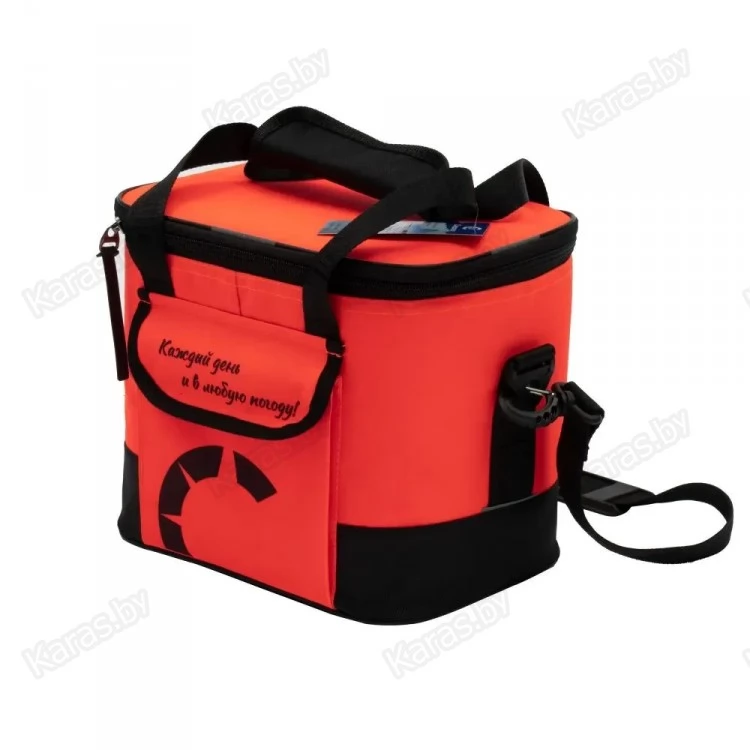 Сумка изотермическая «Следопыт – Red Line» предназначена для длительного сохранения продуктов свежими в путешествии, на пикнике и дома. Дно и крышка обработаны кедером по периметру. На передней части расположен объемный накладной карман на липучке, с сублимационной печатью. Ручки пришиваются к передней и задней стенке по всей длине стенок до самого основания, чтобы исключить любую возможность разрыва. На ручках закреплен подручник овальной формы. По боковым сторонам сумки пришит плечевой регулируемый по длине ремень. На крышке изнутри присутствует карман из сетки на липучке. Подклад склеен на ультразвуке для герметичности швов. Внутри по верхней части сумки расположены клапаны, закрывающие молнию изнутри для максимальной сохранности климата внутри сумки. На дне закреплены накладки для предохранения ткани от истирания. Для более продолжительного сохранения холода рекомендуется дополнительно использовать специальные элементы холода.