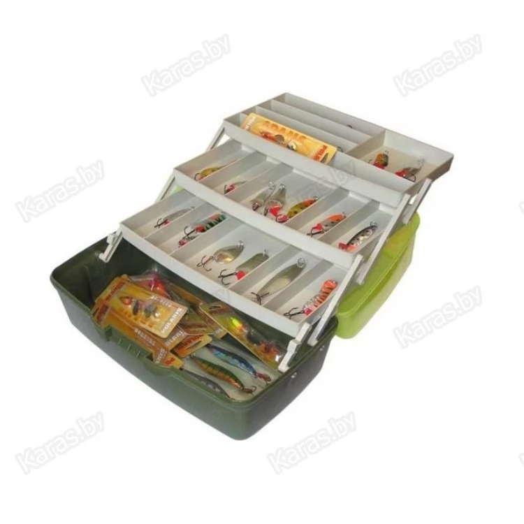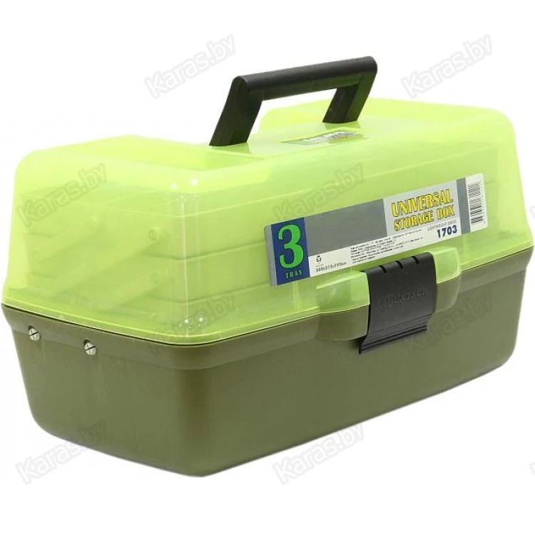 Универсальный рыболовный ящик с достаточно большим внутренним пространством и 3 подъемными полками. Выполнен из полипропилена. Устойчив к воздействию силиконов, масел и большинства растворителей.