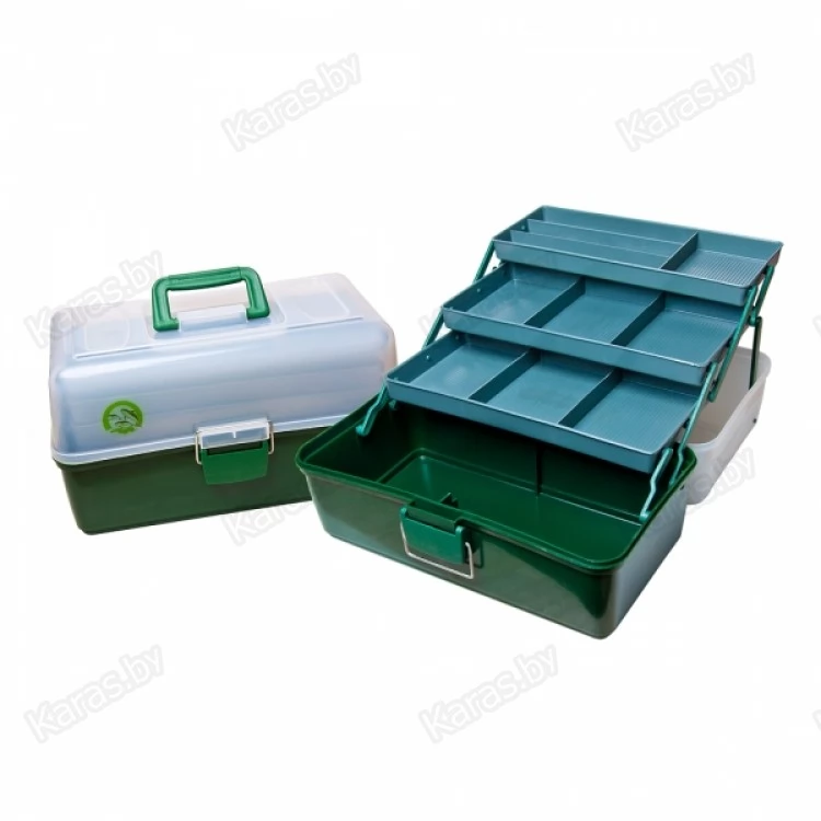 Ящик спиннингиста изготовлен из высококачественного, ударостойкого пластика, который не вступает в химическую реакцию с мягкими приманками. Прозрачная крышка позволяет быстро оценить содержимое верхнего лотка ящика, а благодаря прочности конструкции, эргономичности и легкому весу, он подходит не только для спиннинговой, но и для поплавочной, фидерной ловли. При открытии ящика выдвигается 3 лотка, при этом ящик остается устойчивым, откидная крышка становится его опорой. Лотки для ящика можно использовать для различных рыболовных принадлежностей: приманки, крючки, грузики, воблеры.