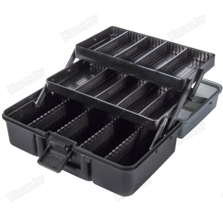 Оригинальное сочетание классического ящика с выдвижными полками и чемоданчика. Сама идея того, что такую конструкцию можно носить в боковом положении (как чемодан) – лишнее доказательство того, насколько точно и плотно прилегают полки друг к другу и насколько прочен замок с металлическими штифтами, удерживающий верхнюю и нижнюю части ящика-чемодана. Ребристая ручка из плотного и одновременно упругого пластика не позволит ящику выскользнуть из ладони, даже если она влажная.