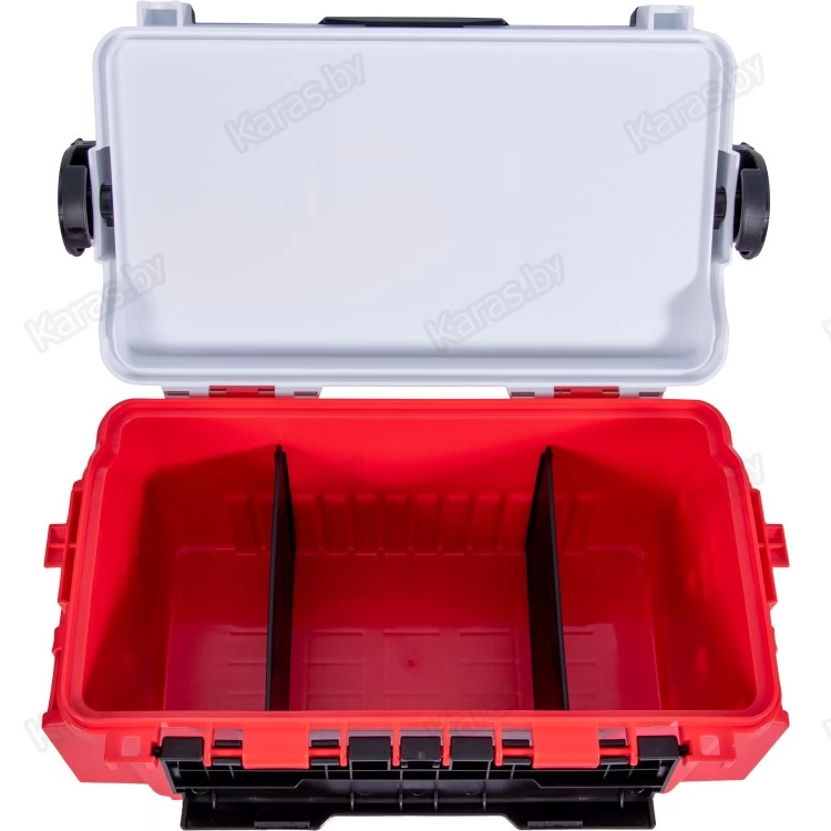 Крышка фиксируется надежной защелой, которая не может открыться случайно, но рыболов получает доступ к содержимому емкости буквально одним движением руки.