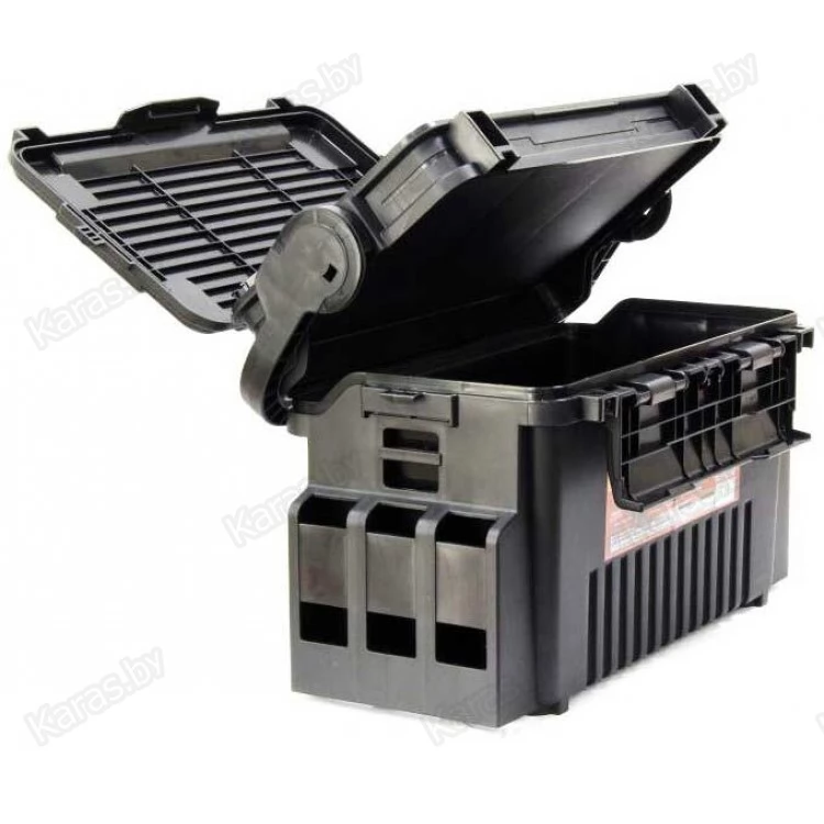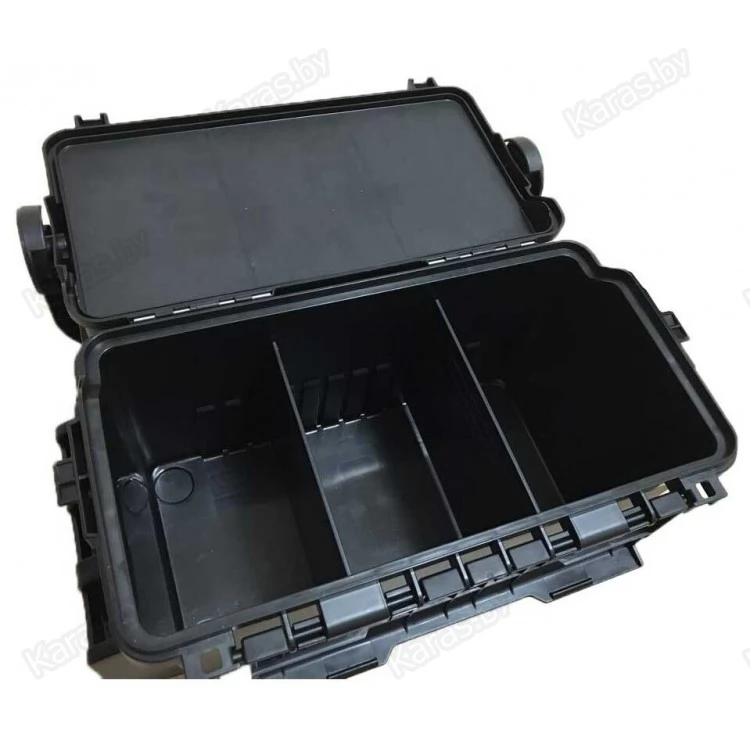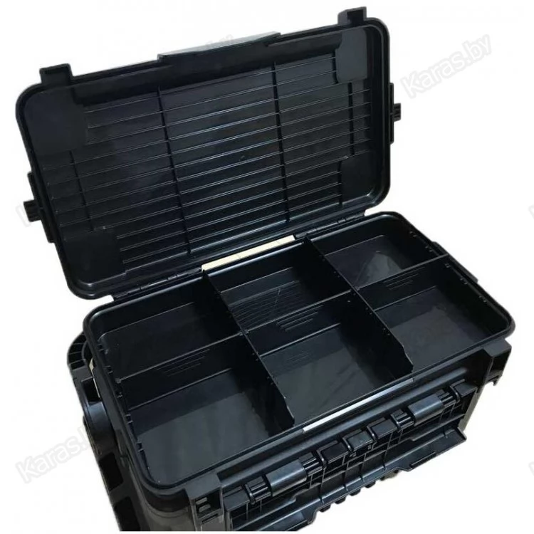 Рыболовный ящик Meiho Versus VS-7070 - оборудован двойной крышкой с отсеками для рыболовных принадлежностей. Откидная крышка, позволяет использовать её в качестве небольшого столика, на котором можно расположить рыболовные снасти, внутренний отсек, позволяет хранить более объёмные коробки. Внешние размеры ящика: 434x233x271 мм., внутренние размеры ящика: 356x186x210 мм., размеры вкладыша: 357x192x45 мм., цвет: черный.