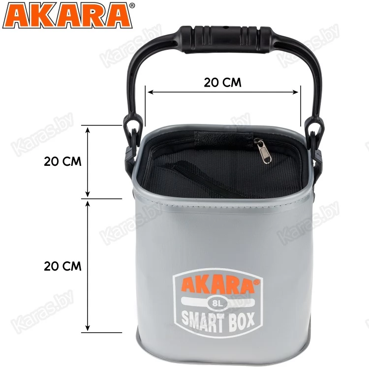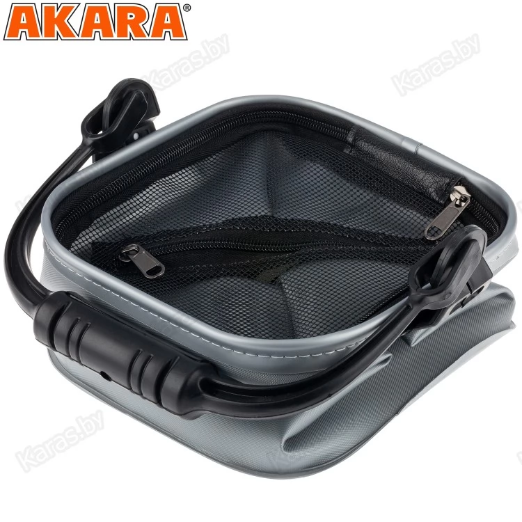 Сумка-ведро из плотного ПВХ, предназначенная в основном для набора воды с высокого берега, дамбы или парапета. Оснащена крепкой ручкой, крышкой из мелко ячеистой сетки с молнией. В комплекте идёт мотовило со шнуром. Размер 20х20х20см
