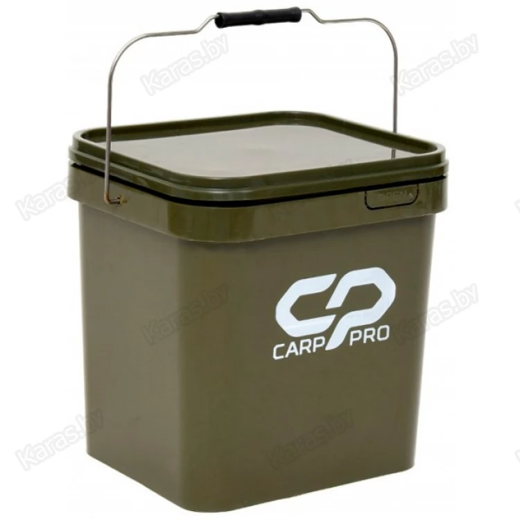 Carp Pro CPSB17L – 17-литровое прикормочное ведро прямоугольной формы с герметичной крышкой. Предназначено для хранения прикормки, прежде всего, во время прикармливания сподом. Ведро Carp Pro изготовлено из высокопрочного пластика. Имеет прочную металлическую ручку. Также может использоваться в качестве небольшого предметного столика.