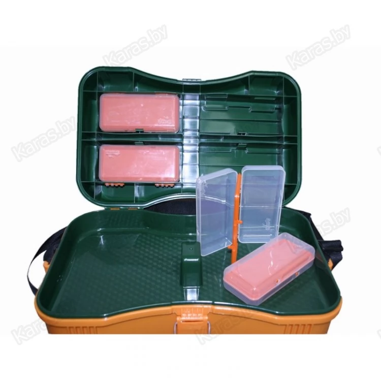 Изготовлен из ударопрочного морозостойкого материала, оснащен двумя ремнями для ношения на плече, и как рюкзак. Удобное анатомическое сиденье расположенное на оптимальной высоте позволяет длительное время находится в статичной позе. На внутренней части крышки расположены четыре контейнера для мелочей. Клапан-лоток, находящийся под верхней крышкой извлекается и устанавливается с небольшим усилием и запирает основной объем ящика, что придает ему положительную плавучесть, позволяя чувствовать владельцу чувствовать себя уверенно в экстремальных ситуациях.